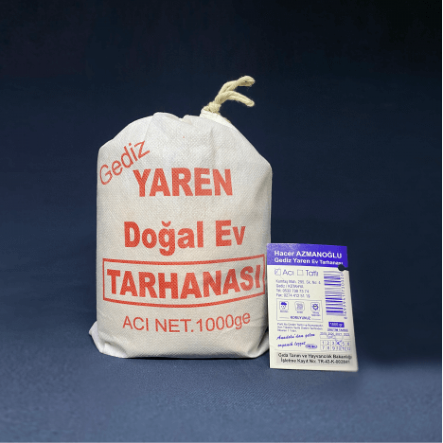 Ev yapımı, katkısız ev tarhanası enfes bir çorba lezzeti sunar. İçindekiler: Un, taze kırmızı biber, yoğurt, kuru soğan, taze acı biber, tuz, taze domates, kuru nane, ekşi maya. Uyarı: Gluten içerir.